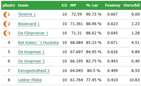 • Hoogste percentage gemidd. in de voorronde Ton Roothaerttoernooi
